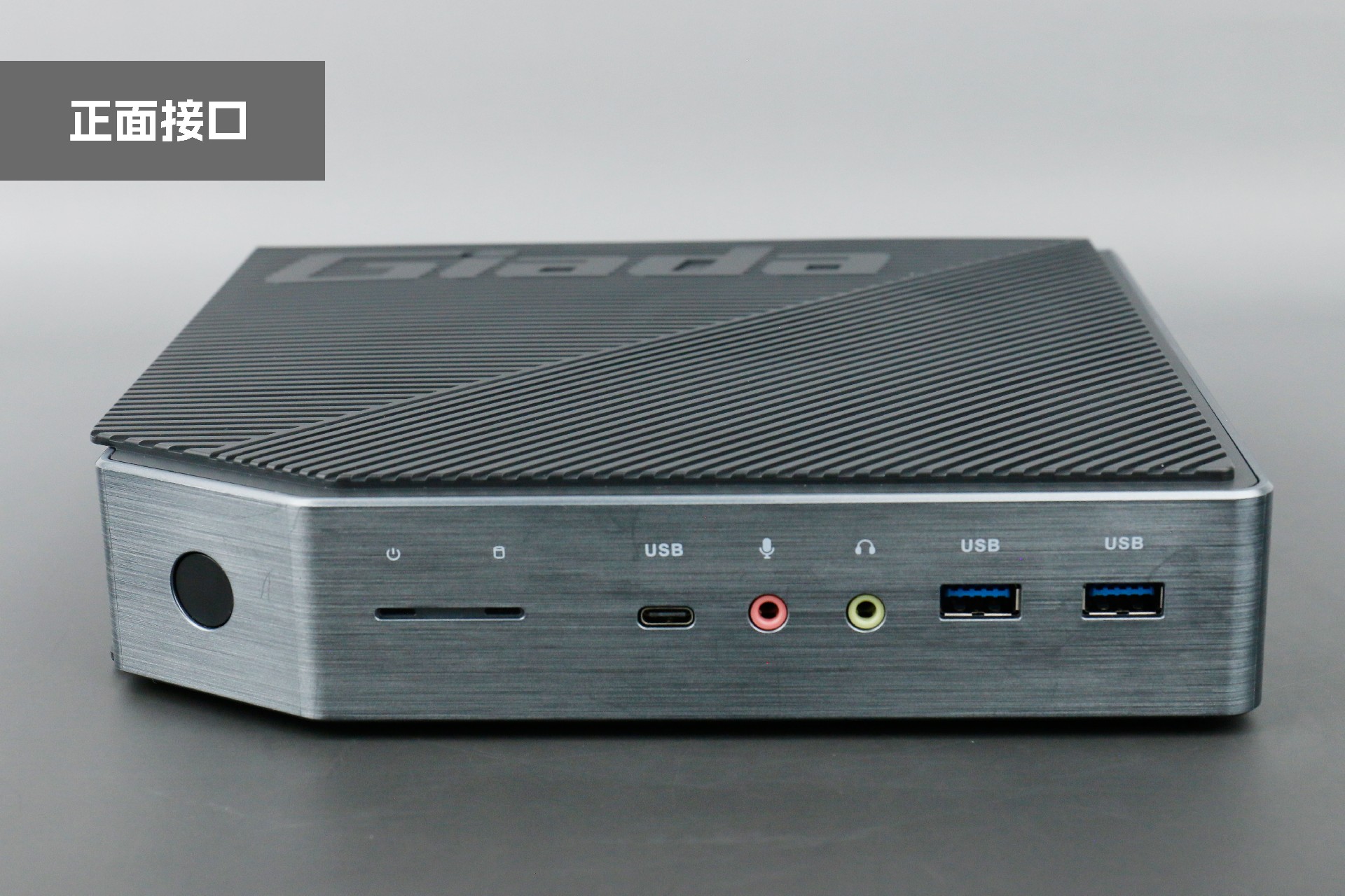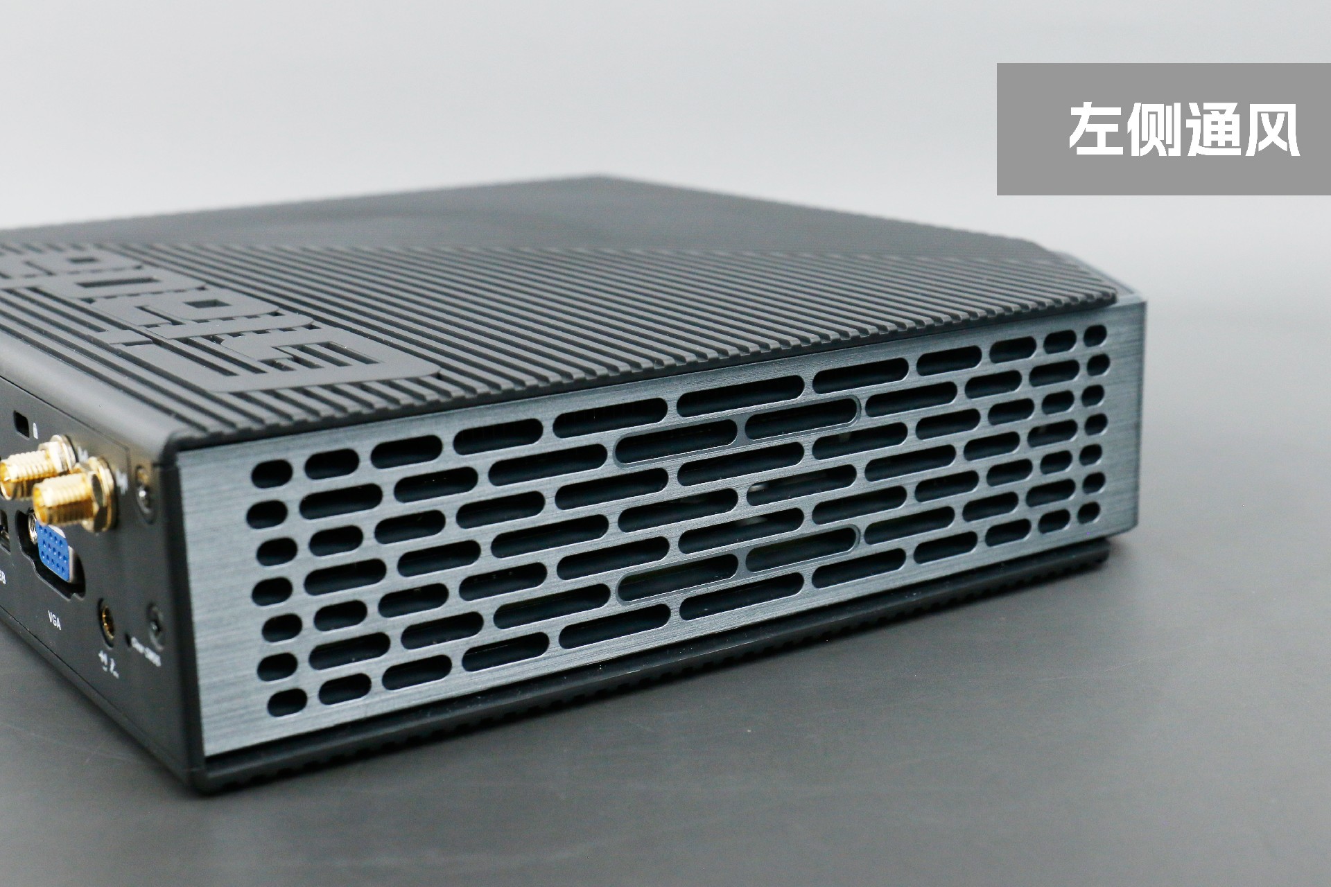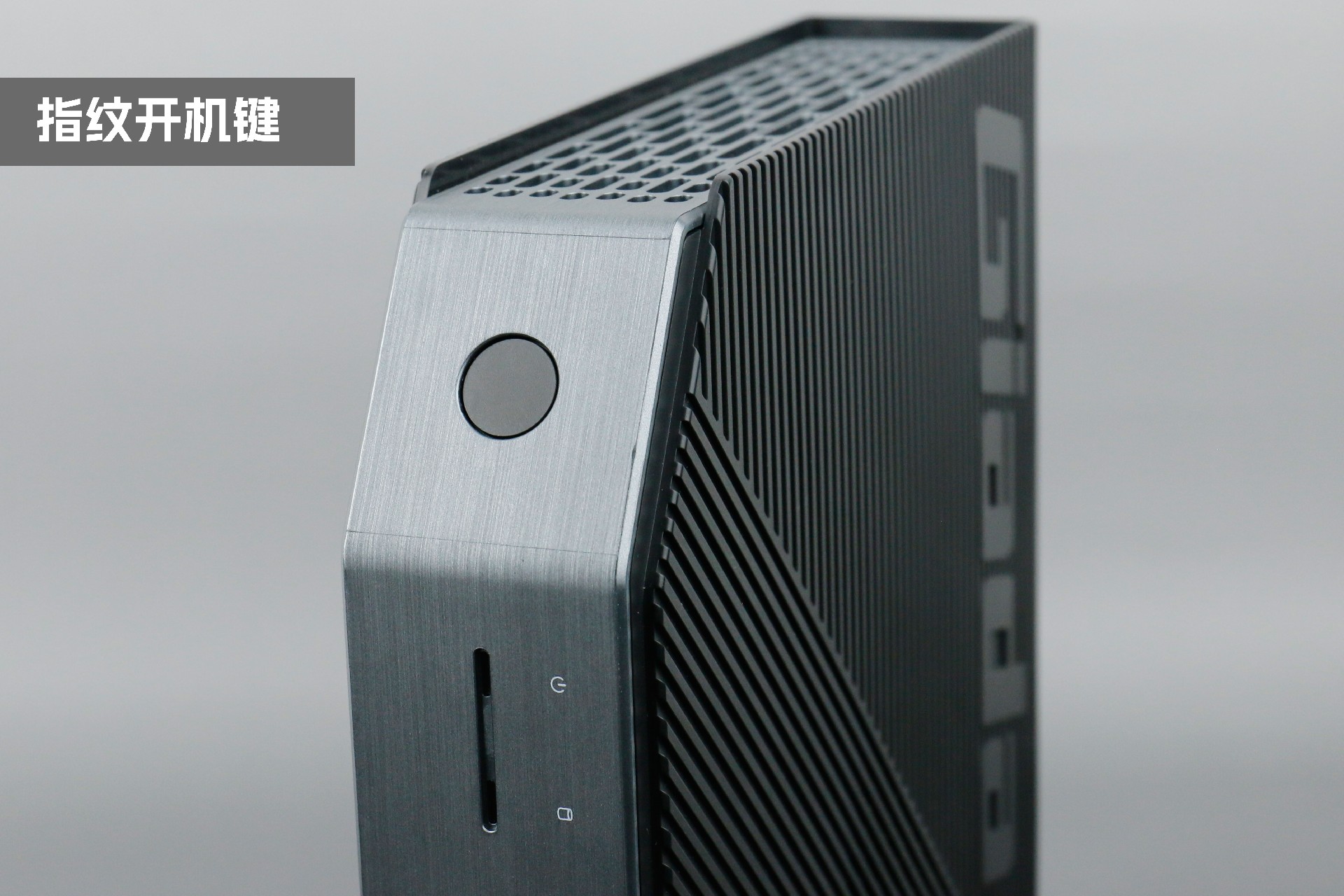 打开js555888金沙桌面云终端Y-BOX P3,你会发现它的结构并不是常见的四方体设计,而是在转角处好似被切割开一个角,切割出来的面积为指纹识别开机键。它的外观为优雅的银灰配色,机身正面厚重感十足,顶部依然沿用黑色哑光栅格并延伸至整机背面,磨砂塑胶材质壳,印刻js555888金沙Giada品牌名;其他三面则为银灰色,两侧是蜂窝式通风口设计。