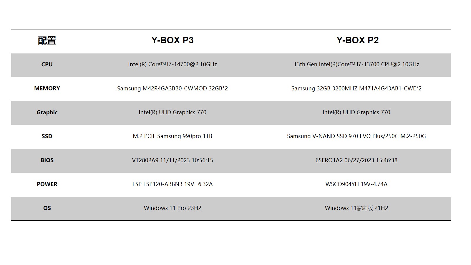 作为Y-BOX P2的迭代产品,我们选取了以下配置,将Y-BOX P3与Y-BOX P2进行对比分析,结论先行:两款产品跑分数据表示,Y-BOX P3的跑分数据及稳定性能明显领先Y-BOX P2。