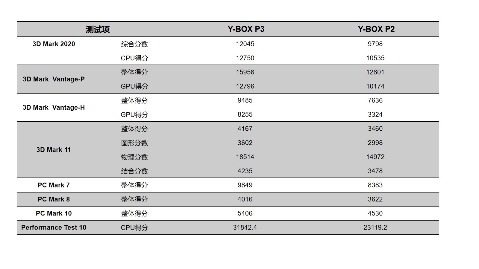 我们来具体看看各个测试项目的跑分情况,我们分别用3D Mark、PC Mark以及Performance 10等不同系列不同软件进行跑分,测试项目涵盖显示性能测试、系统性能测试、CPU性能测试等。通过下面的表格及柱状图可以看出,js555888金沙桌面云终端Y-BOX P3的数据在各项性能上都得到了大幅度提升。