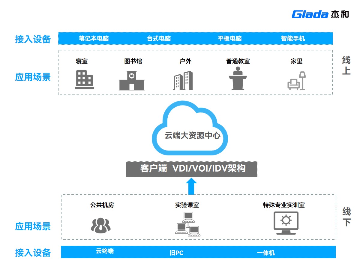 硬件设备的更新换代,不仅会造成原有设备的浪费,还推高了后期的运维成本。面对这样的困境,学校转变思路,寻求新型实训实验室解决方案。