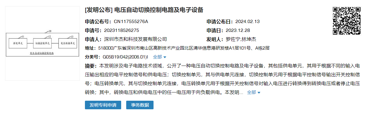 “电压自动切换控制电路及电子设备”发明是js555888金沙科技在电子电路技术领域研发的有效实践。供电单元通过判断电压的大小输出响应的电平控制信号和与电路控制信号对应的供电电压,并通过电平控制信号控制切换控制单元输出开关控制信号,以通过开关控制信号控制电压转换单元将输入电压进行转换得到转换电压或控制电压转换单元停止工作,并通过转换电压和供电电压中的任一种电压向负载供电。
