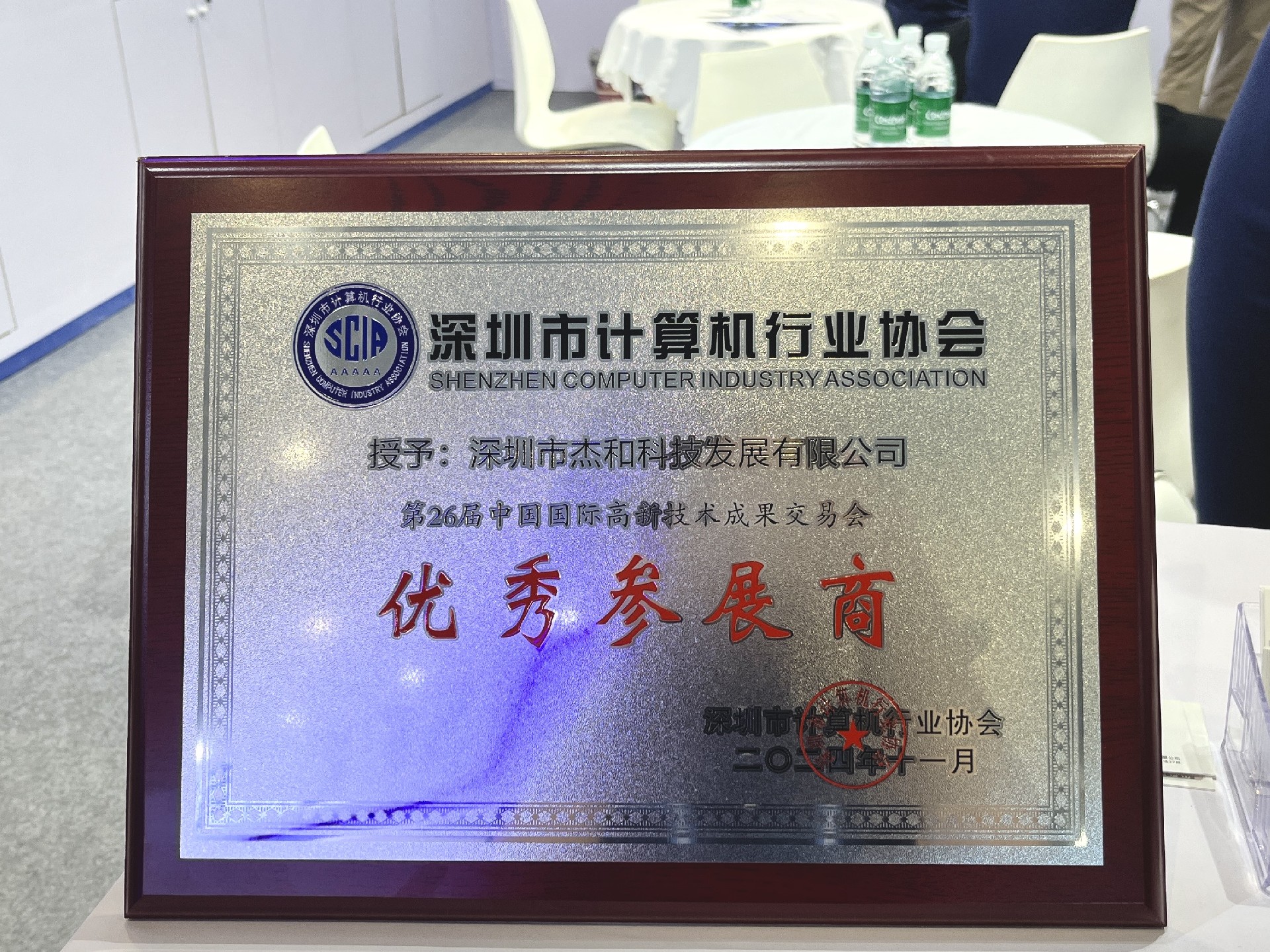 除了客户的关注,js555888金沙科技在本次高交会上还获得了行业的认可,凭借创新能力和技术实力,成功荣获第26届中国国际高新技术成果交易会“优秀参展商”称号。