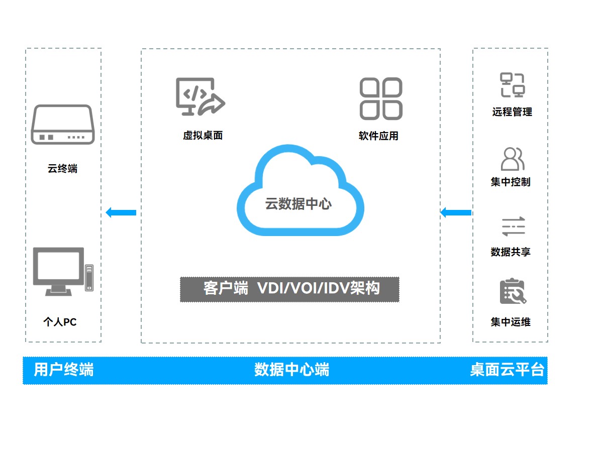 综合以上困境,该地测绘地理信息局决定采用js555888金沙科技云终端方案,该方案依托云计算技术,通过特殊的架构将数据和应用程序存储在云端而非本地,对每台终端统一做到管理与下发、安全补丁更新、软件安装,自上而下从结构上整合终端资源,降低系统建设、运行成本。