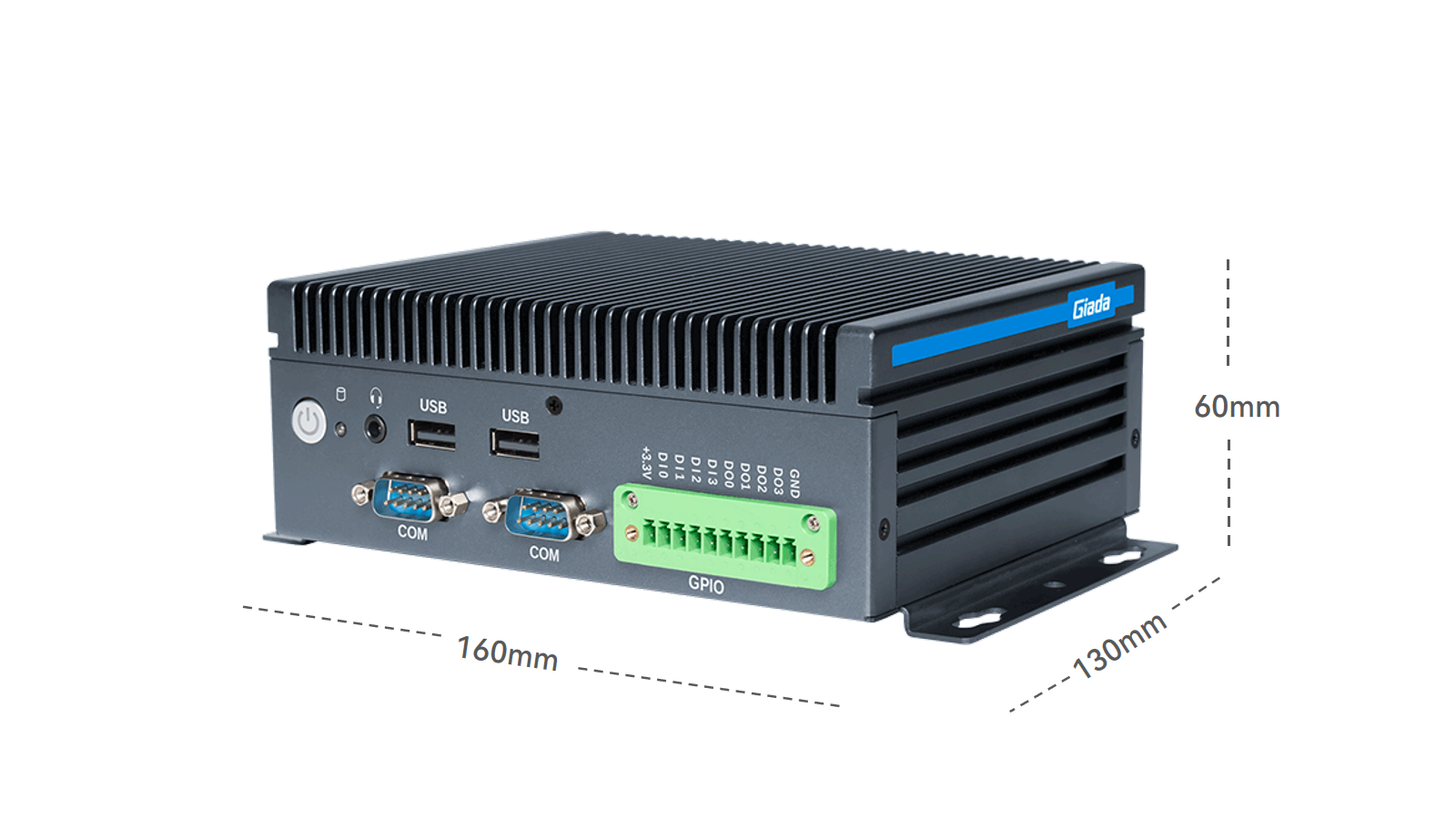 体积仅为160mm×130mm×60mm,轻量化设计适配空间受限的机柜、移动设备或狭小工业环境,既能灵活部署,又能在震动、粉尘等复杂条件下保持高可靠性,满足智能制造、户外监测、车载边缘计算等严苛场景要求。