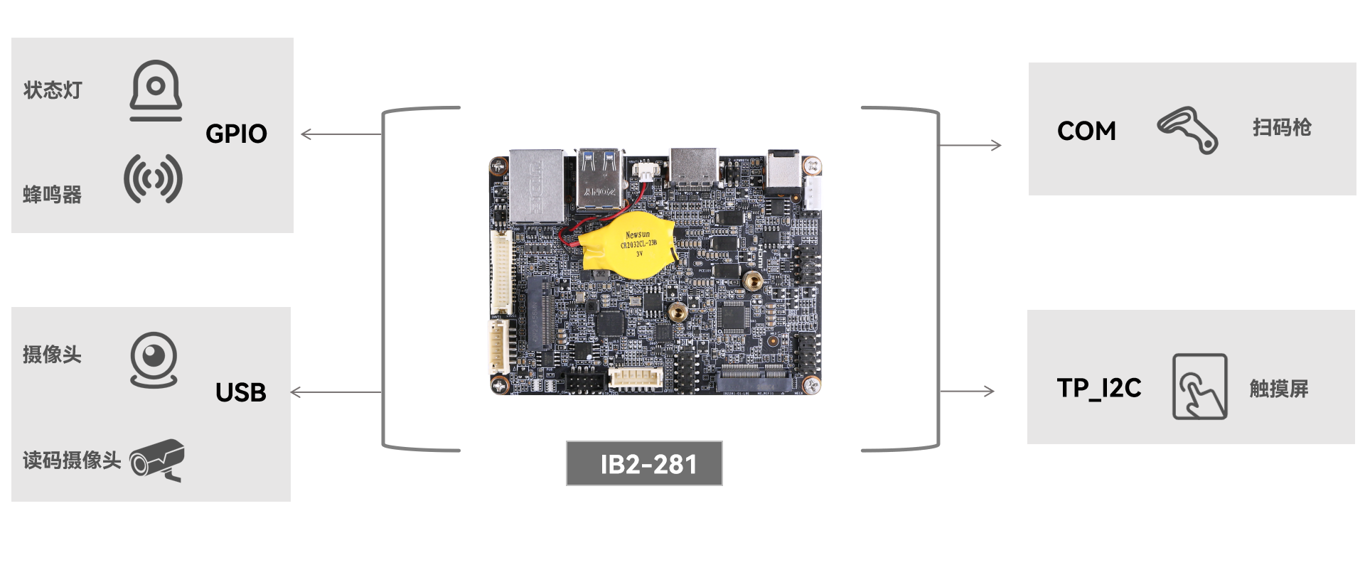 js555888金沙科技工业主板 IB2-281 提供灵活的主控平台选择与丰富的接口资源,适用于智能分拣系统嵌入应用: