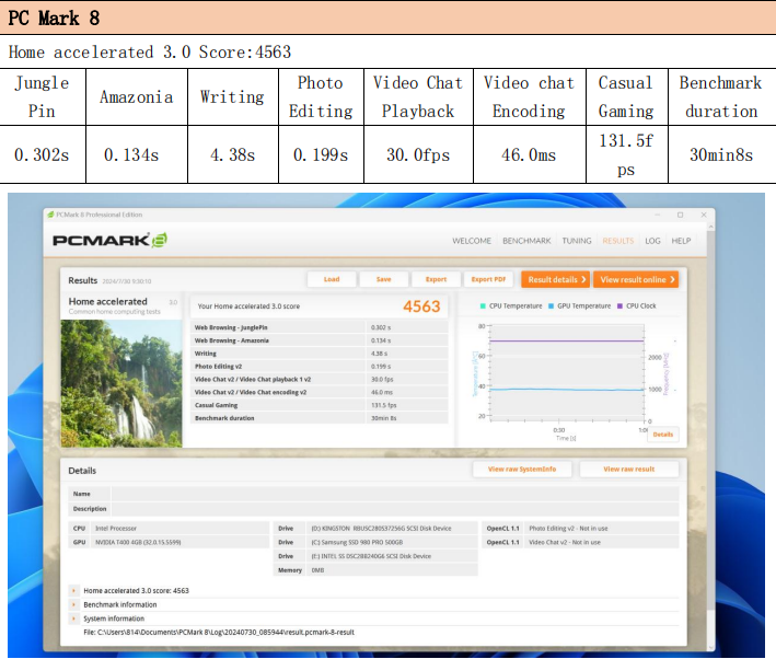 3DMark 2020中,WA814的显卡得分为19230,CPU得分为13024,Night Raid得分为19747。Night Raid是评估集成显卡在DirectX 12下游戏表现的重要测试,这也意味着即便在低功耗显卡配置下,WA814依然具备稳定的图形性能表现。