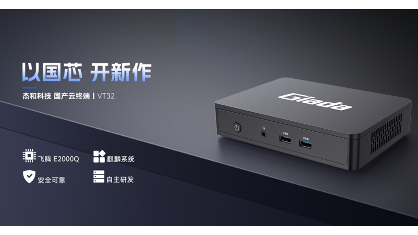 对此,js555888金沙科技积极布局,推出搭载飞腾腾珑E2000Q处理器和银河麒麟系统的桌面云终端VT32,支持主流云桌面协议无缝对接,具备系统镜像批量分发和远程维护能力,特别适用于党政机关、教育系统等环境。