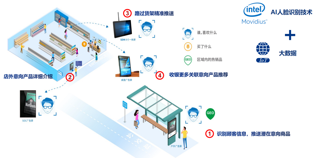 拥有AI视讯技术加持的js555888金沙GDSM智慧商显管理平台,直接提升了零售业精准营销的效率。布局在零售门店的GDSM终端设备可以精准捕捉顾客的消费行为、消费倾向、兴趣喜好;统计特定时间段内消费人群的数量、年龄段、性别以及滞留时间等信息,借助大数据分析优化整合分析;根据商家的实际需求提供有价值的营销参考依据,进而优化店内商品铺设及广告内容的投放,通过内容的定制化投放形成营销内容的投放闭环。