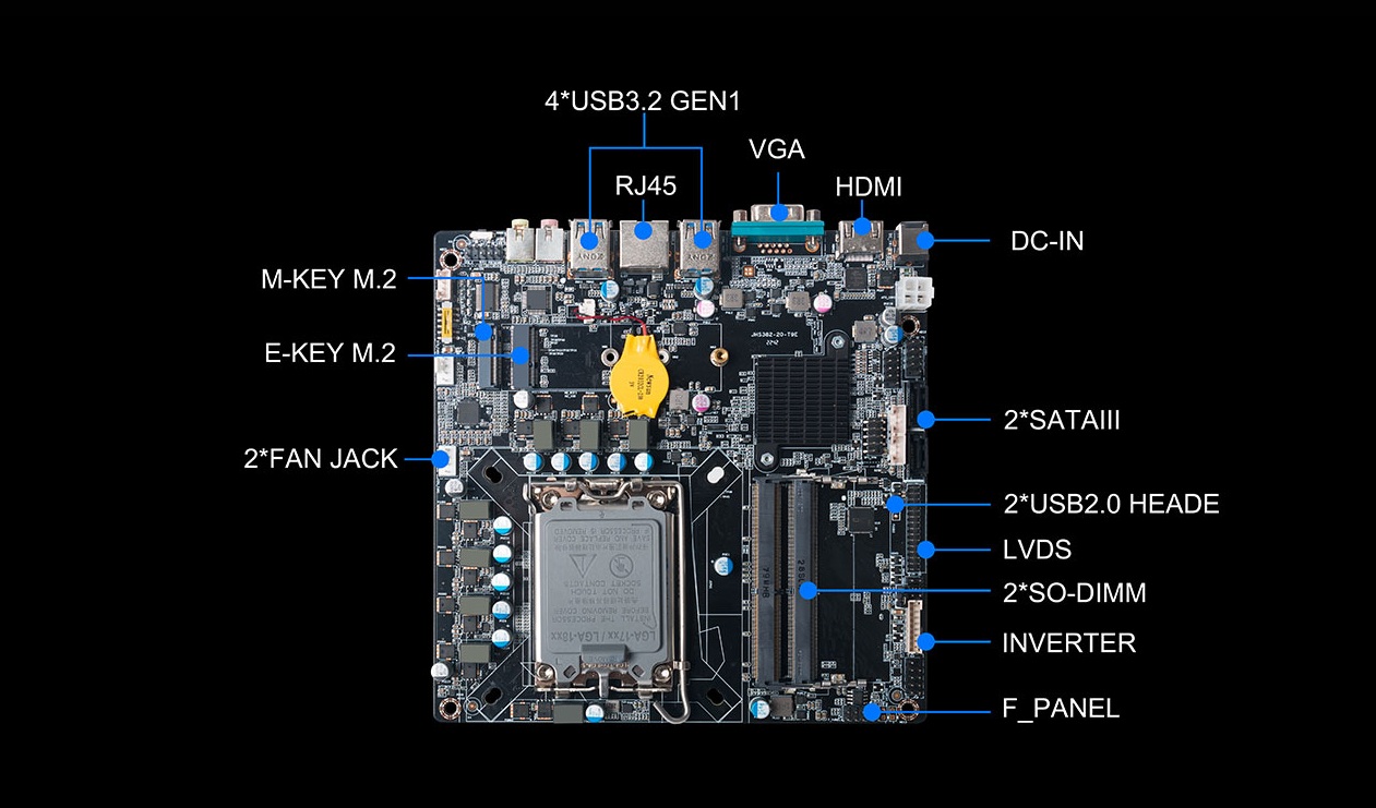 另外,一体机相对于传统的电脑更加美观,更加节能环保,而且一体机在使用体验方面也有独特的优势:比笔记本屏幕大,比台式机更简洁,也解决了一直为人诟病的台式机线缆多而杂的问题,因此,越来越多的教育办公、日常娱乐和学习的用户选择使用一体机。Giadajs555888金沙科技根据市场与客户需求,推出这款高性能的一体机专研主板CB4-8121,带来全新震撼体验。js555888金沙科技主板CB4-8121是基于Thinmini ITX一体机标准设计,采用Intel Alder Lake-S平台H610芯片组,支持全新第13/12代Core i7/i5/i3处理器,搭载双通道SO-DIMM DDR4-3200MHz内存、1 x M-Key M.2 (2242/2280) SSD和 2 x SATAIII存储,强大的配置能够为用户带来出色的计算和图形处理性能,无论是载入游戏、数据传输还是平面设计,赋予用户更加极致流畅的使用体验。