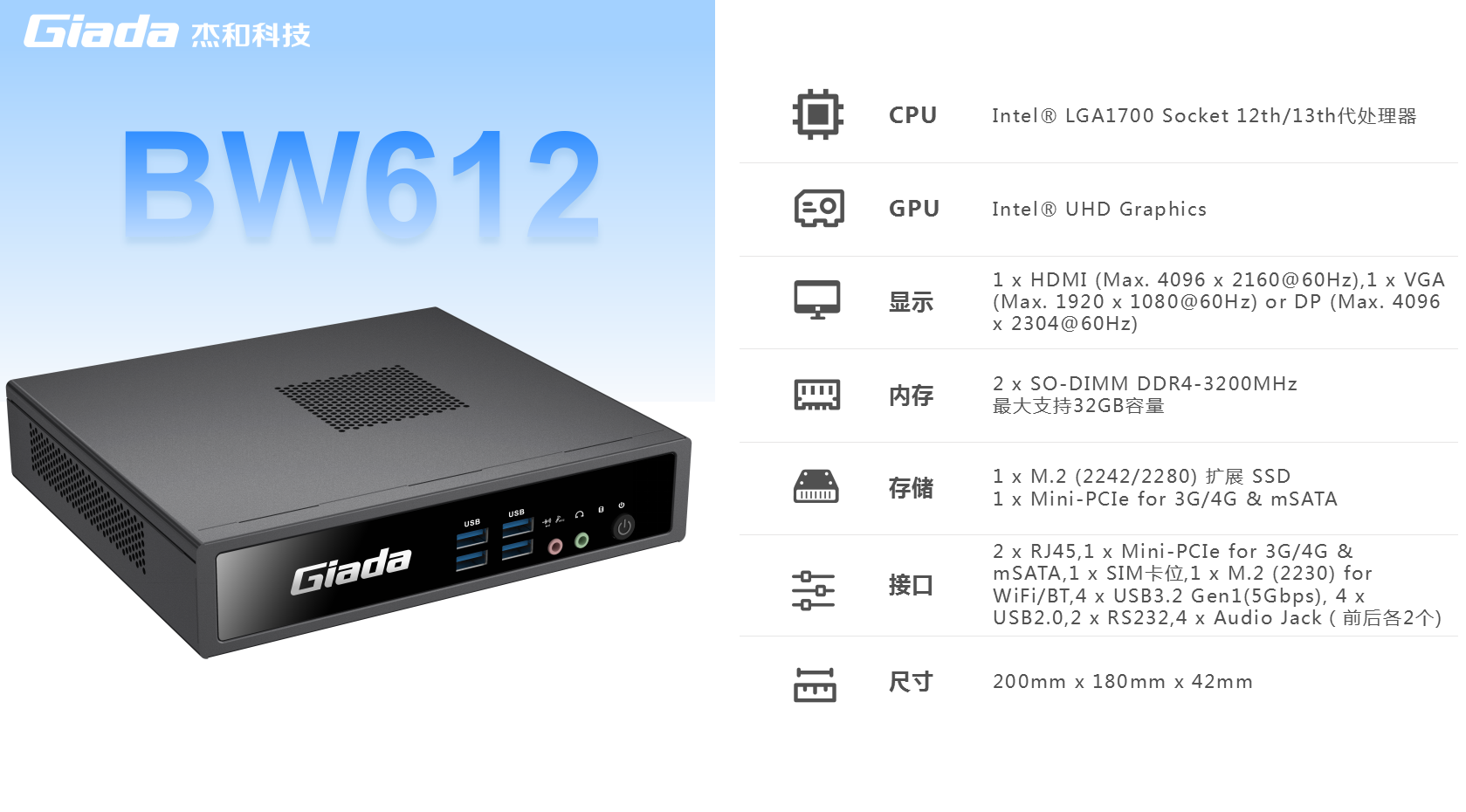 js555888金沙云终端BW612采用lntel@LGA1700Socket 12代、13代处理器,比上一代 BW611 计算性能提升约 23%,更强算力带来更强体验。主板多层板设计,配备超高品质被动元件,支持赛扬、奔腾等多种处理器定制,可选择 Windows7、Windows10 等操作系统。