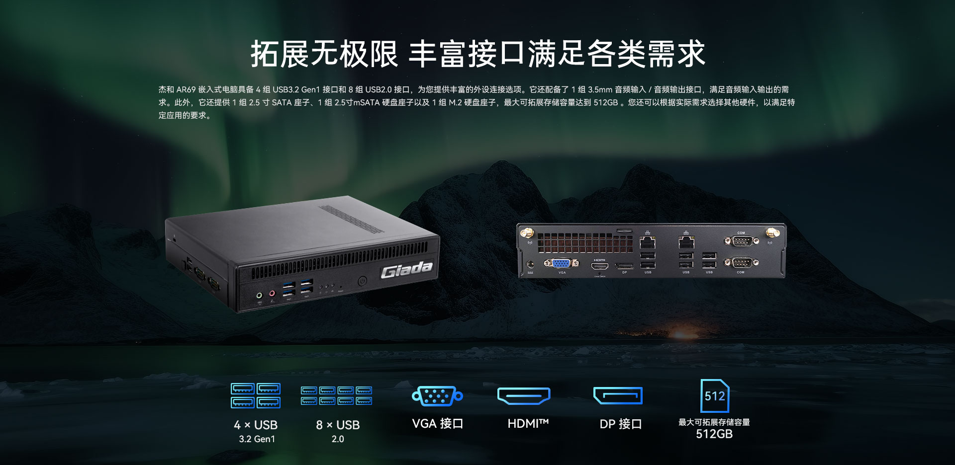 | 接口 | 1 x M.2 (2242/2280) for PCle SSD (PCle3.0 x2) | |