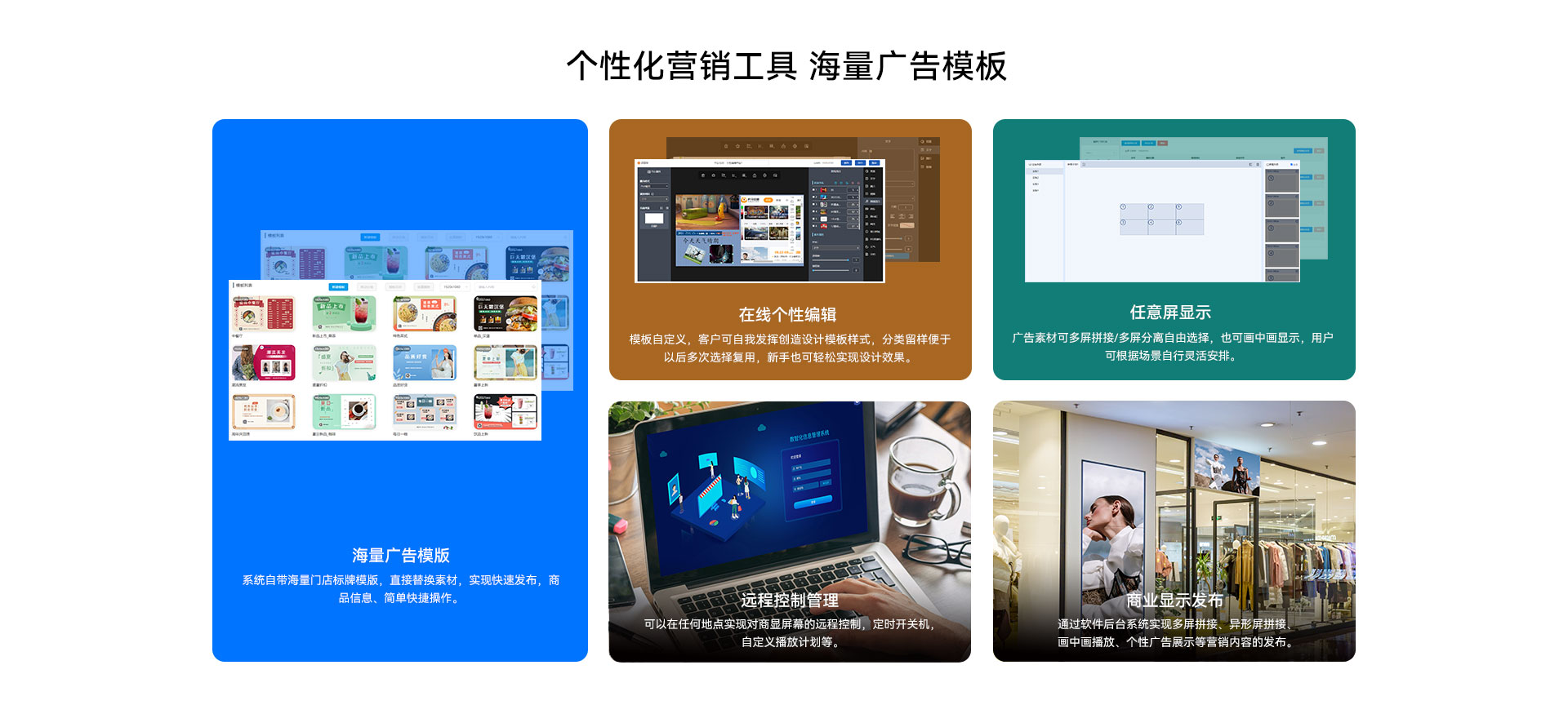 云、货、场、端一体化的全新模式。我们依托数字标牌、云终
