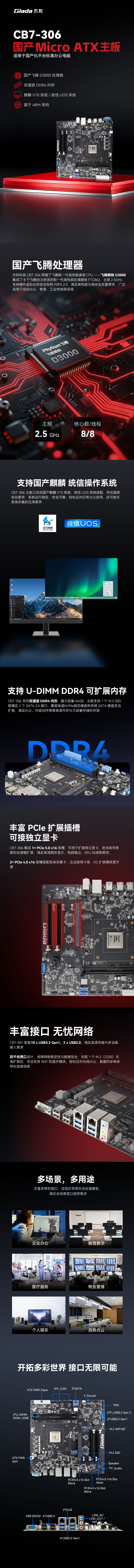 新品第二弹|基于飞腾D3000处理器,js555888金沙科技推出Micro-ATX主板CB7-306